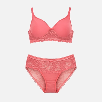 Women’s Multicolor Lace Bra & Panty Set of Three (Peach, Coral & Grey)