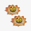 Lotus Blossom Decorative Brass Diya Set of 2 – Multicolor Festival Home Decor Lamp