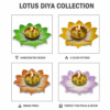Each diya is handcrafted from premium brass and polished to perfection, showcasing a beautiful lotus design in four different colors — purple, green, yellow, and orange. The set symbolizes purity, prosperity, and spiritual positivity.