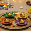 Ideal for festivals, religious ceremonies, or home decoration, this set of diyas adds color, elegance, and a serene ambiance to your environment. The compact size makes them perfect for tabletops, altars, or as a festive gift for loved ones.