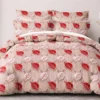 Beige & Red Leaf Print Double Bedsheet Set with 2 Pillow Covers