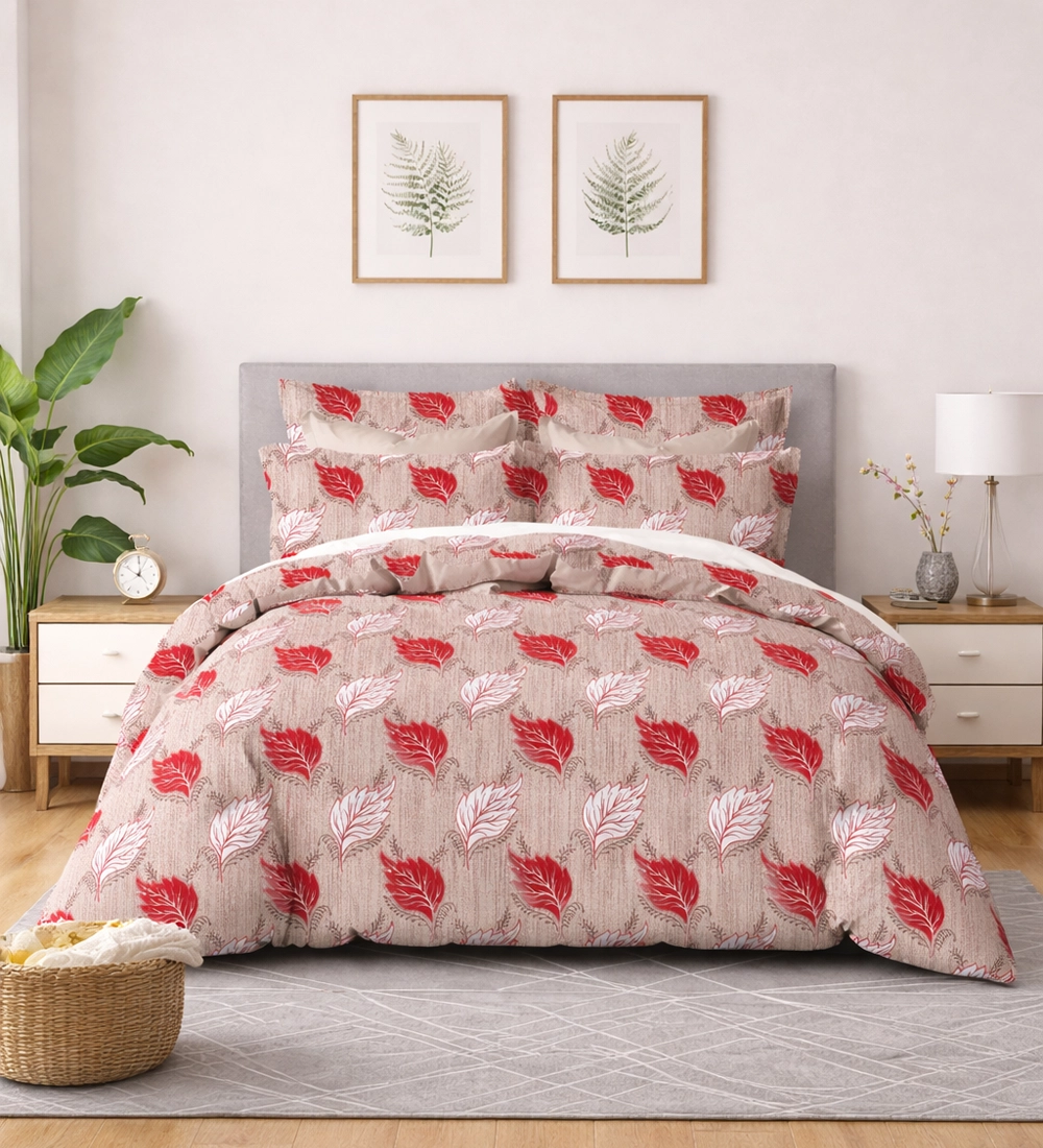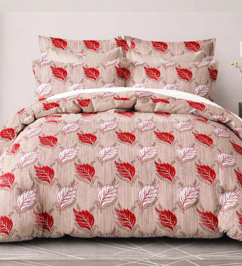 | Product Name | Beige & Red Leaf Print Double Bedsheet Set with 2 Pillow Covers |