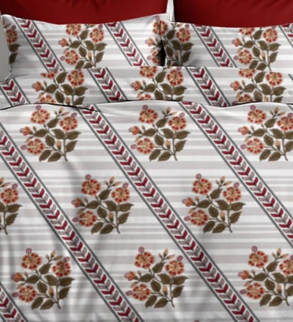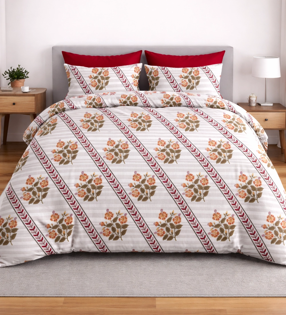 | Product Name | Cream & Red Floral Stripe Double Bedsheet Set with 2 Pillow Covers |