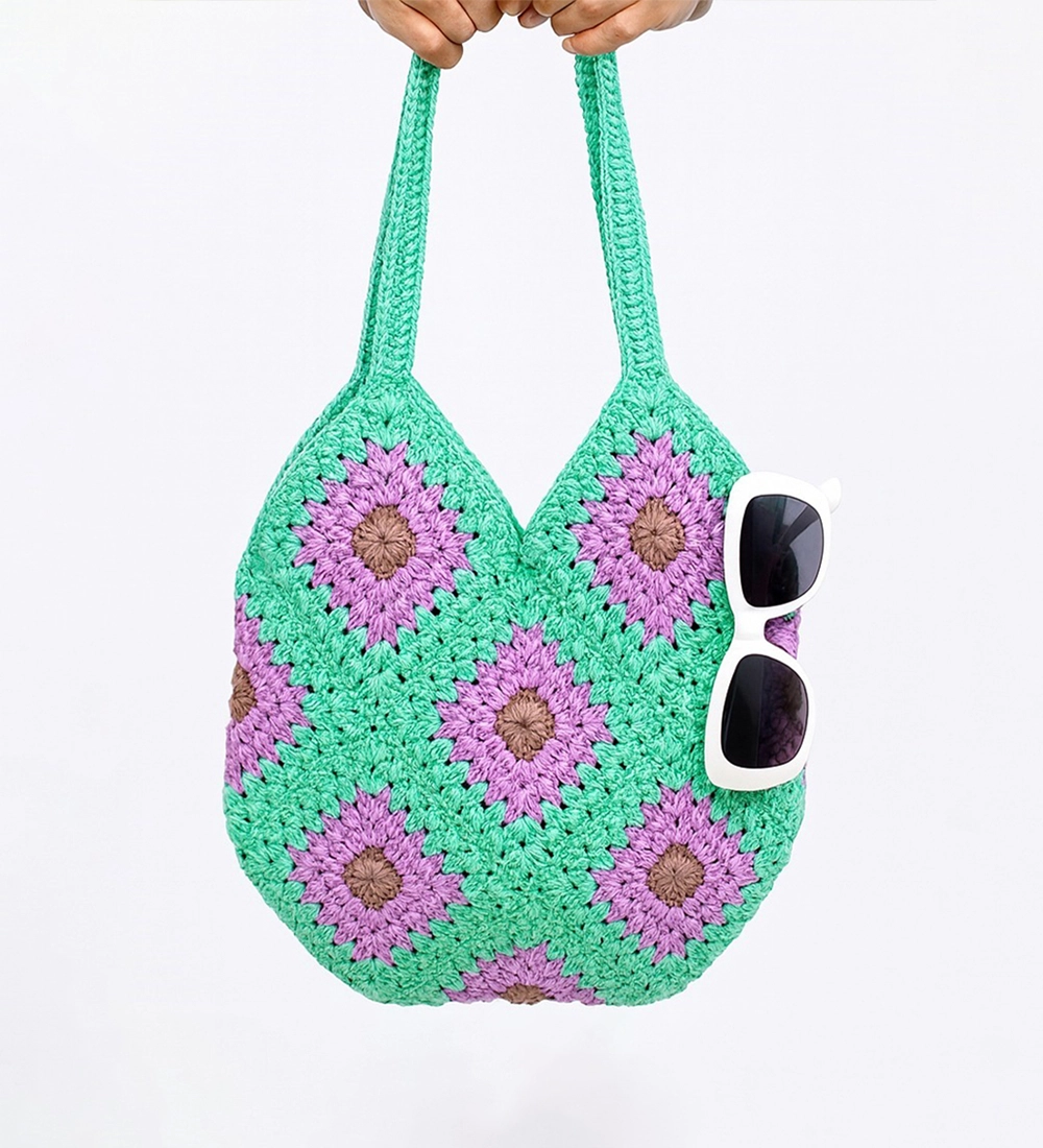 House n Goods Colorful Crochet Tote Bag with Granny Square Pattern