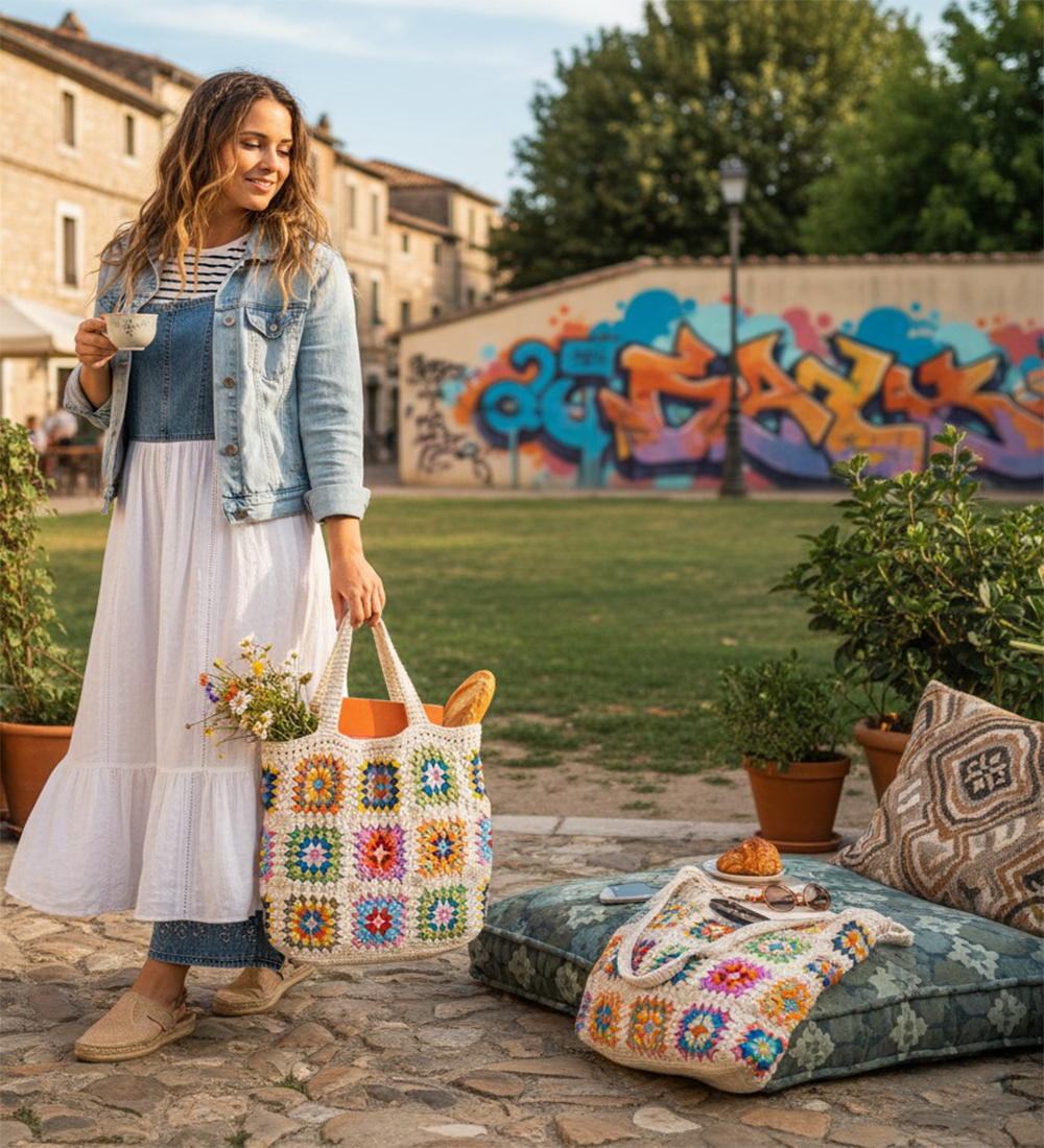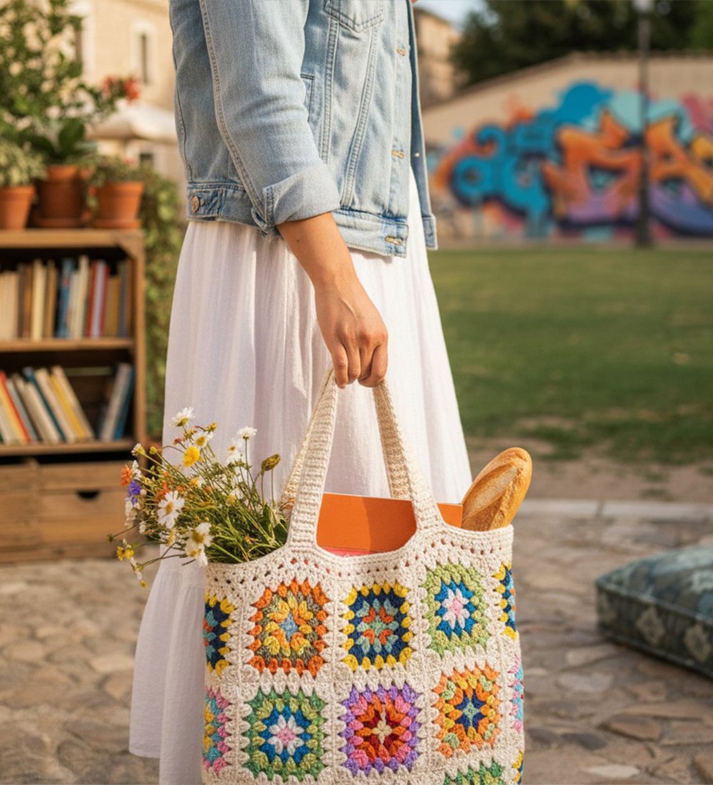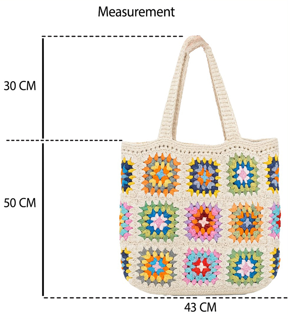 | Product Name | Colorful Crochet Tote Bag with Granny Square Pattern |
