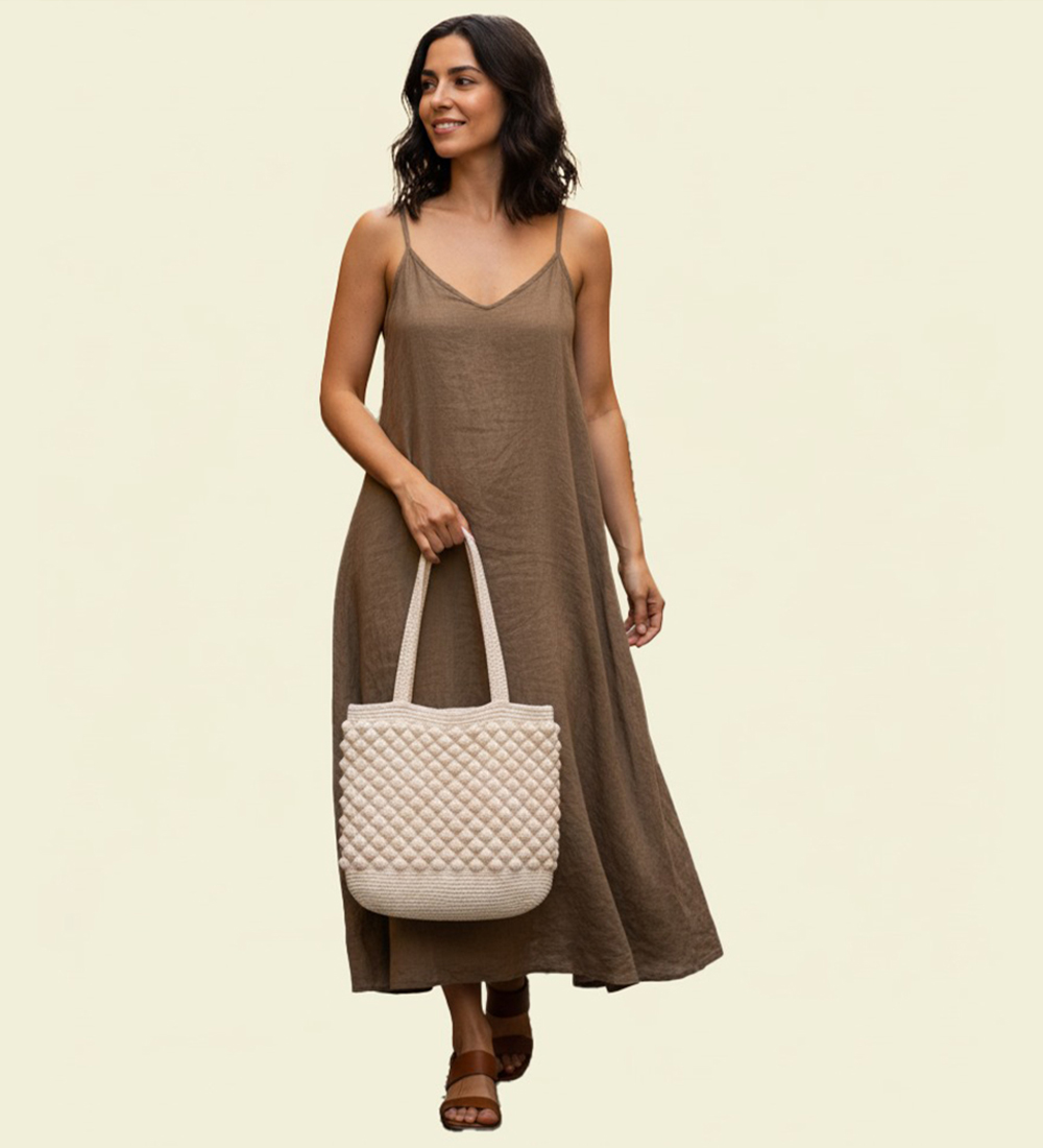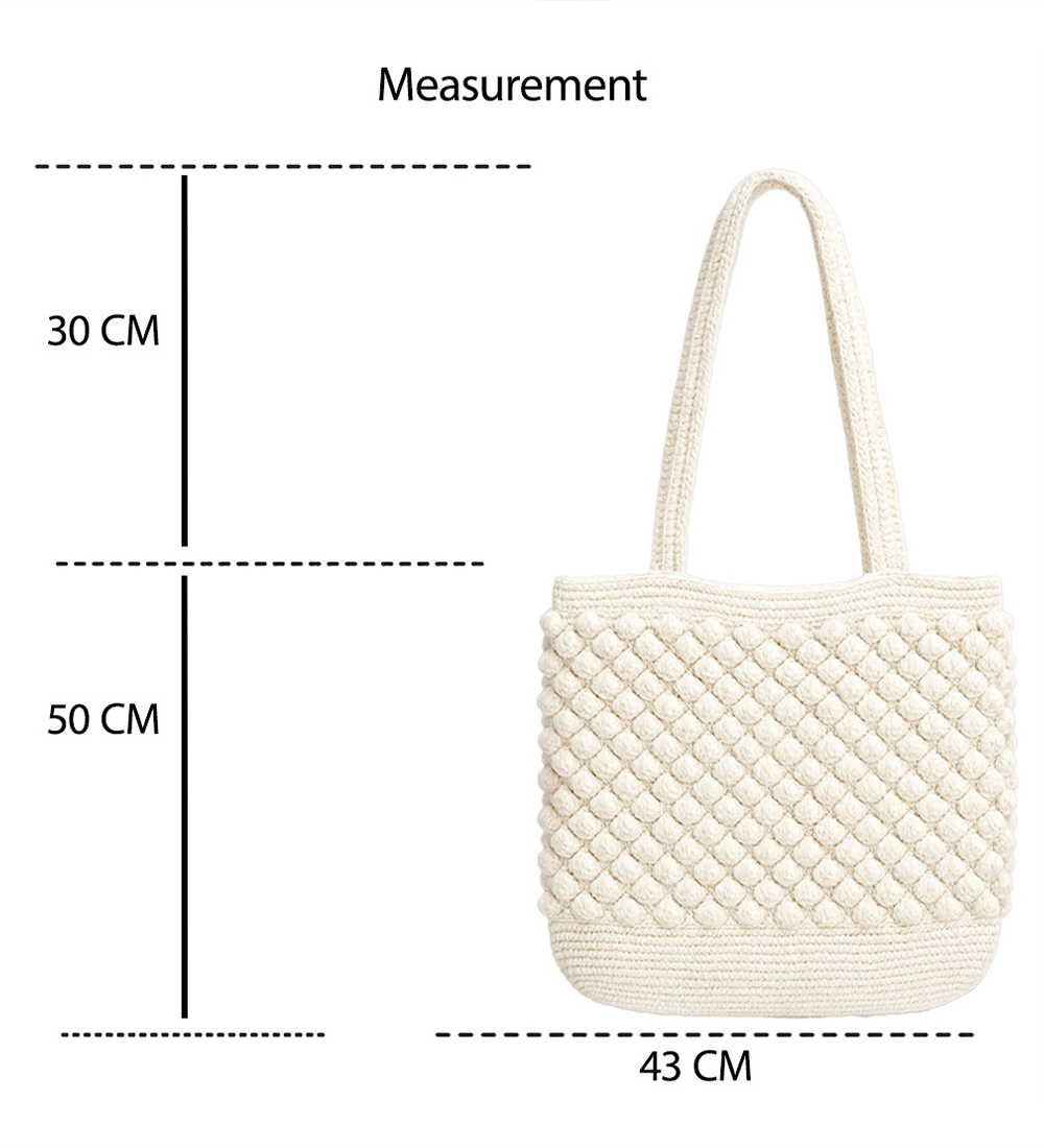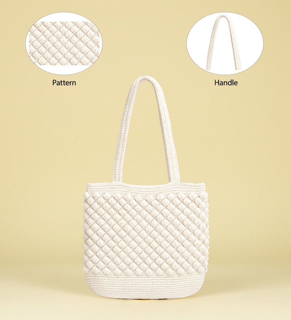 The spacious interior comfortably fits daily essentials, books, or a small towel and snacks, while the soft, rounded handles ensure effortless carrying on errands, beach trips, or weekend getaways. Its neutral cream tone pairs seamlessly with casual, boho, or chic outfits, and the lightweight yet durable design makes it perfect for everyday use.