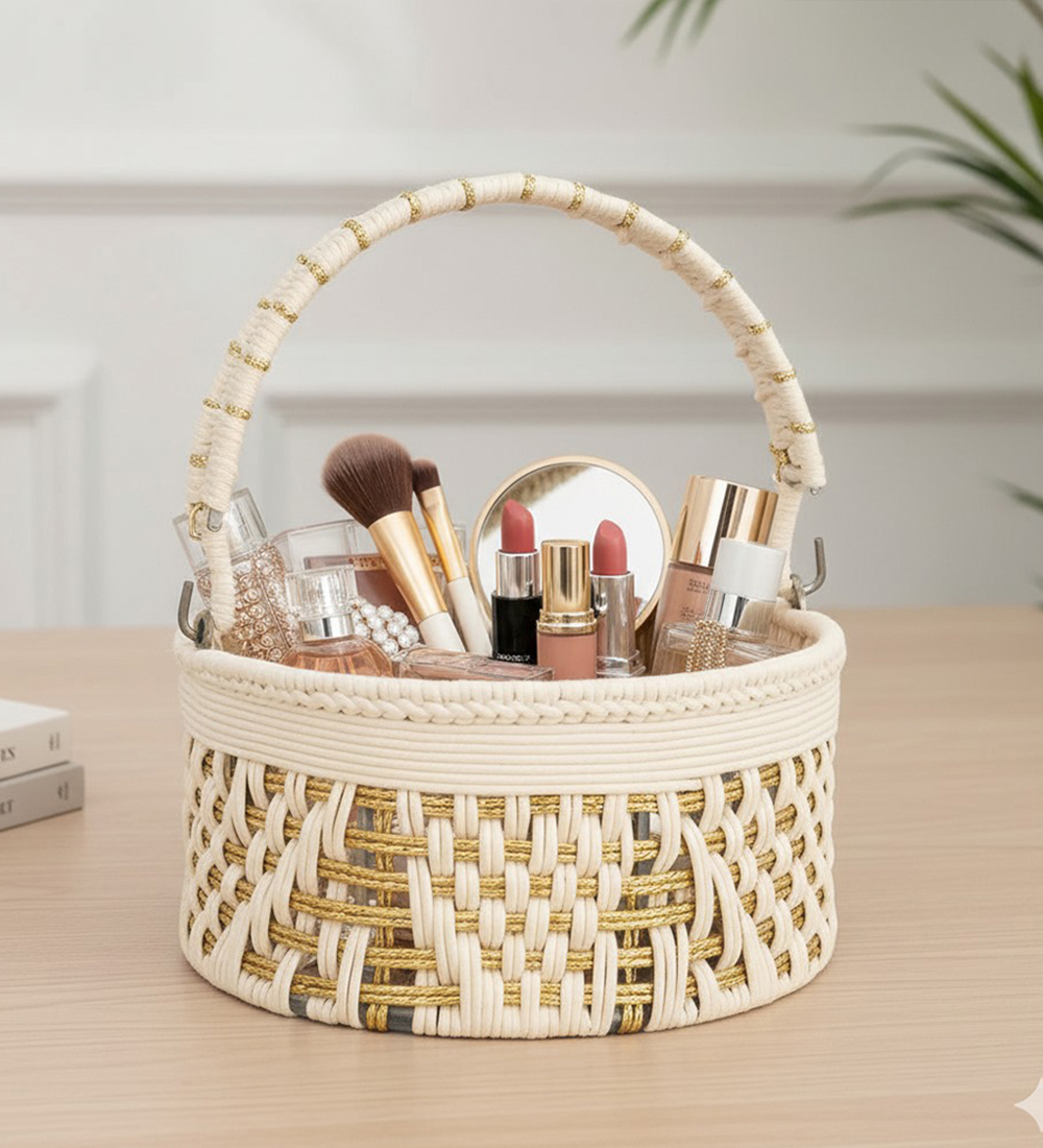 | Product Name | Handwoven Macramé Basket with Gold Accents |