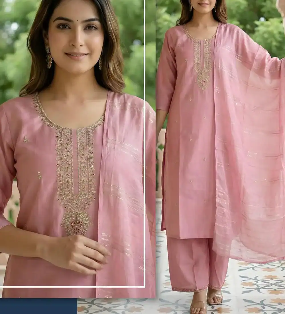 Complete Ethnic Set: Includes a straight-fit kurta, matching pants, and a lightweight dupatta for a coordinated look.