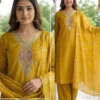 Be the first to review “Khadi Cotton Embroidered Kurta Set with Dupatta – Mustard Yellow” Cancel reply