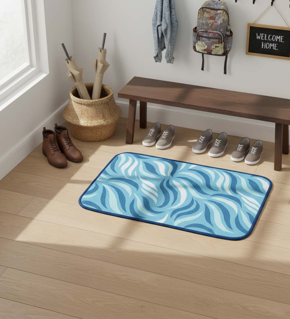 Add a touch of elegance and comfort to your home with the KPAAS Sponge Mat. Made from premium polyester, this mat combines softness and durability, offering a plush surface that absorbs moisture effectively. Its modern blue wave pattern enhances any décor — perfect for bathrooms, bedrooms, or entryways. The anti-slip backing ensures stability, keeping your floor dry and stylish.