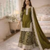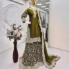 Olive Green Heavy Fandy Silk Embroidered Kurti Plazo Set with Dupatta for Women