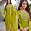 Women’s Olive Green Roman Glass Suit Set with Banarasi Dupatta | Festive & Party Wear Kurta Set