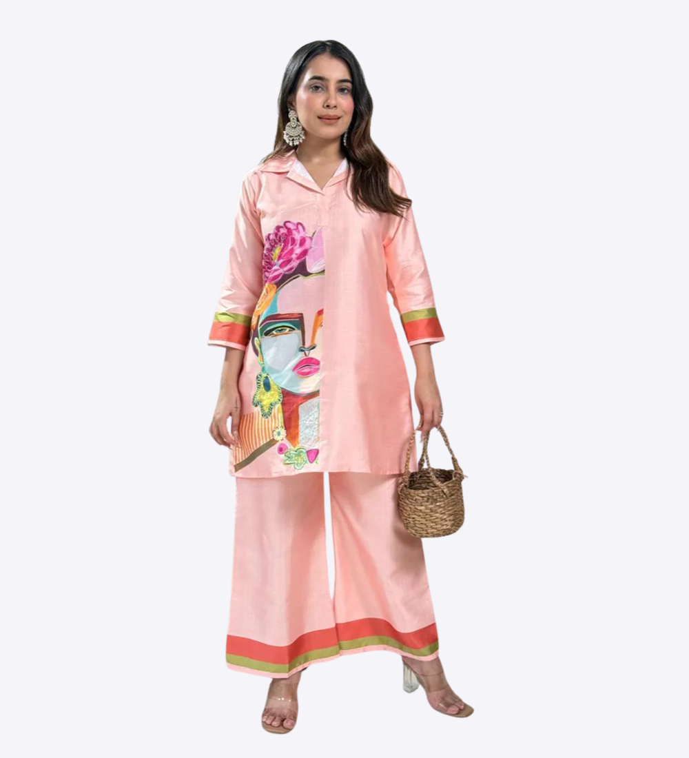Vatican Figure Print Cotton Co-Ord Set for Women – Kurta & Palazzo (Peach)