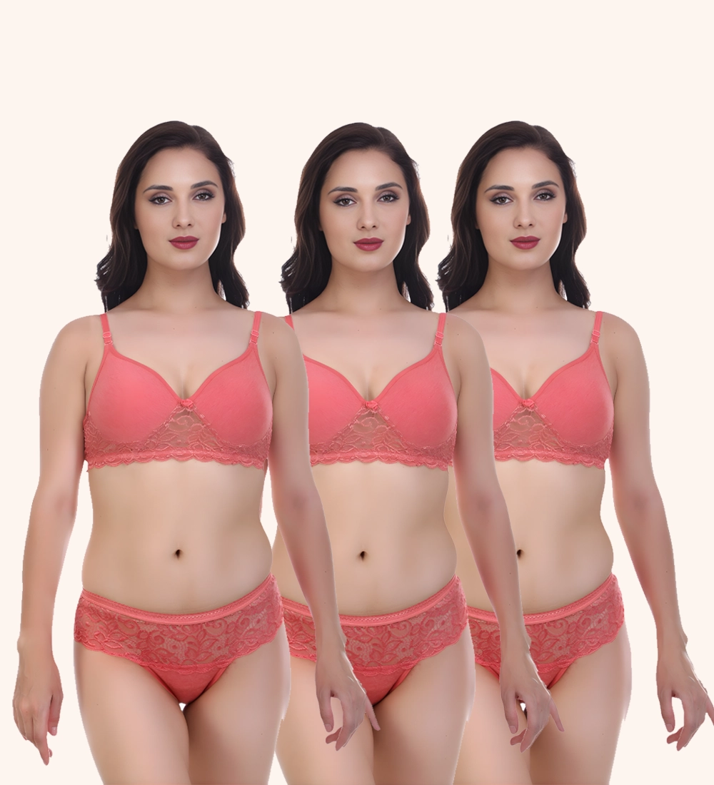 Women’s Lace Bra & Panty Set – Soft, Comfortable & Stylish Innerwear (Pack of 3)