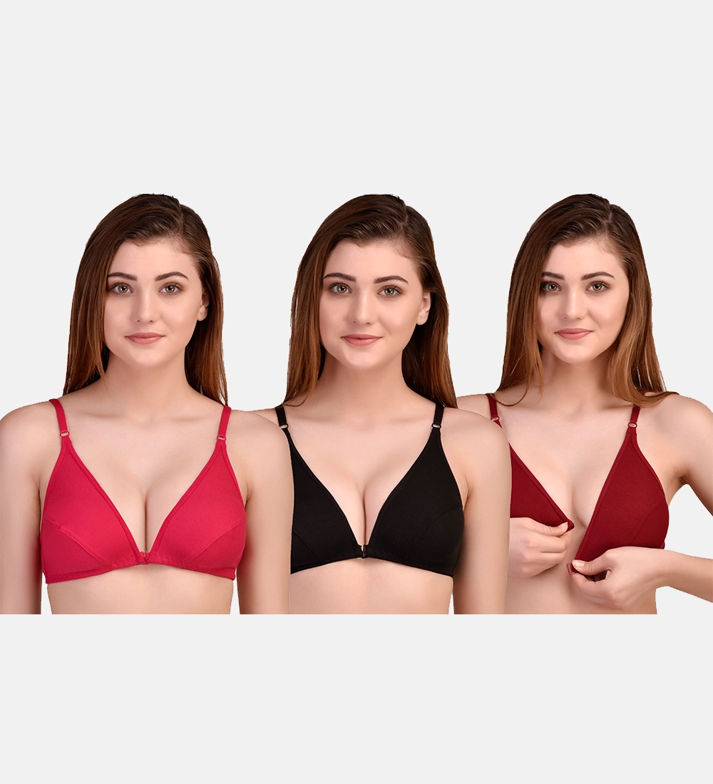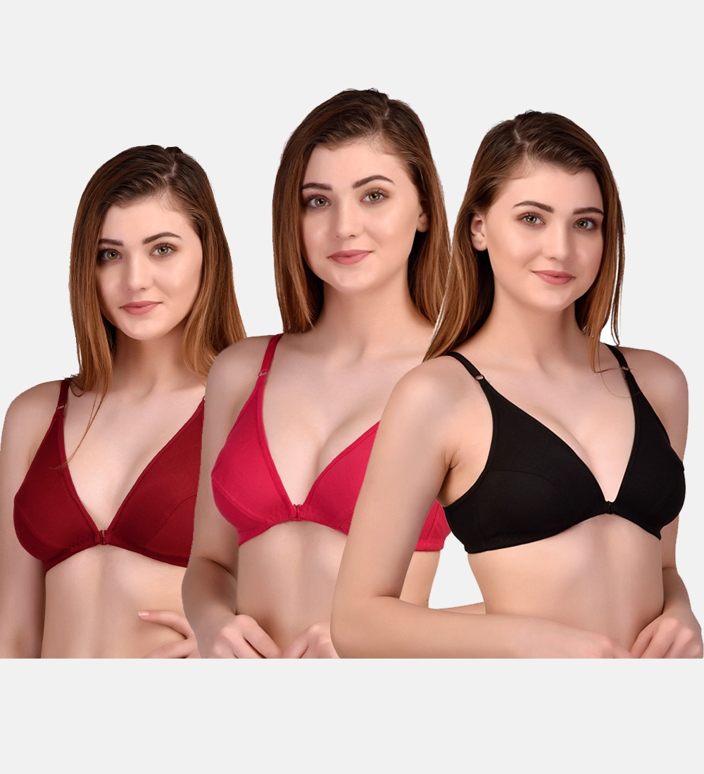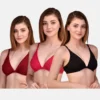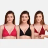 Women’s Multicolor Cotton Bra Set of Three (Red, Black & Maroon)